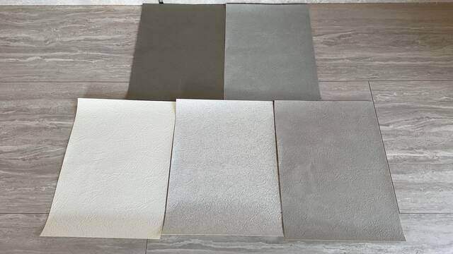 左のグレーのどちらか、もしくは間くらいの壁紙がないか改めて探して購入しようと思います。