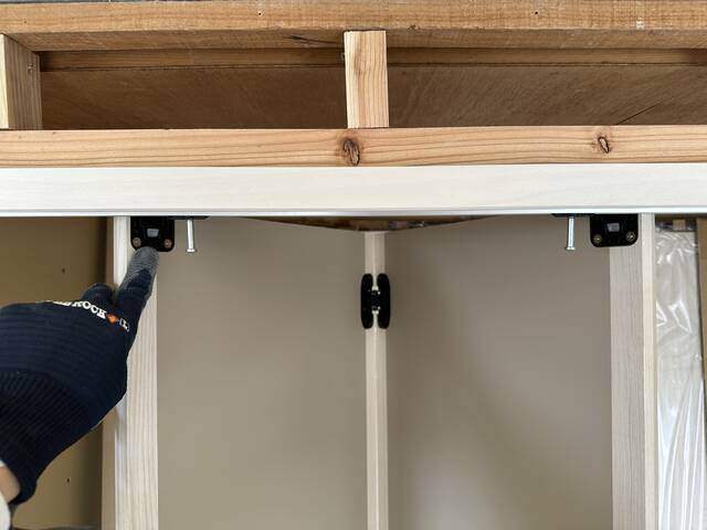 最後に取っ手を固定したらクローゼット扉の取り付けは終了です。