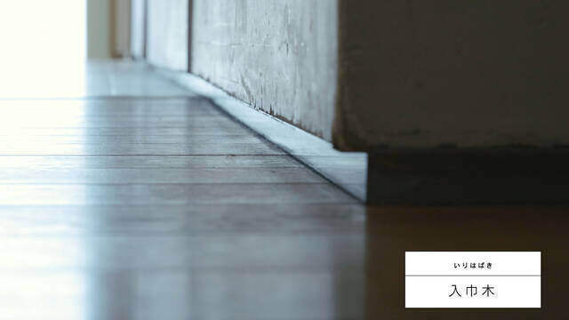 壁と床の継ぎ目に取り付ける巾木の一種。通常壁から張り出す形になるが、それとは逆に引っ込めた物を入巾木という。