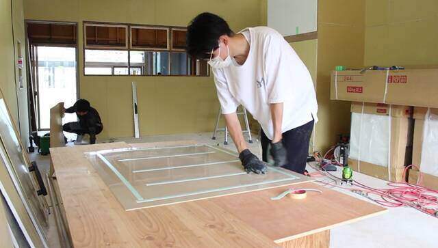 キッチンの位置が決まったら3分割されている状態から1つにまとめていきます。