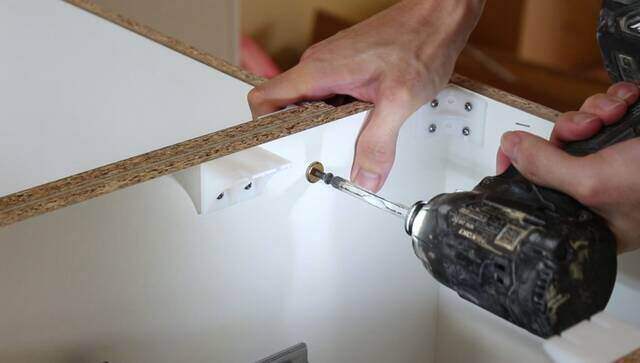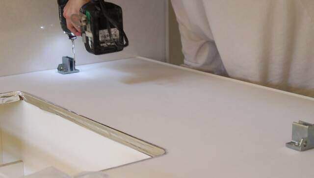 位置が決まったら土台と天板をビスで止めます。
