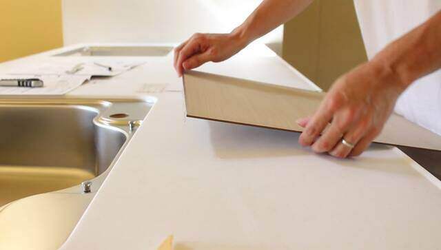 キッチンパネルの両端に見切り材を取り付けます。