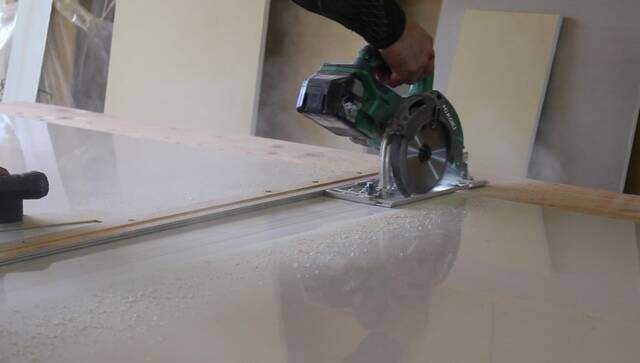 キッチンパネル用の刃に変えて丸ノコでカットします。