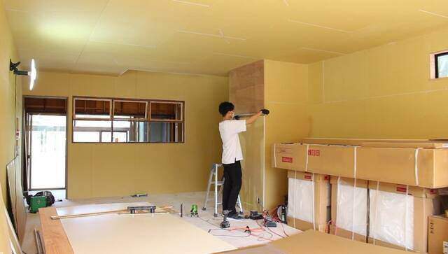 家一軒分のパテをしてからの壁紙貼りになるので、かなりの時間がかかりそう。