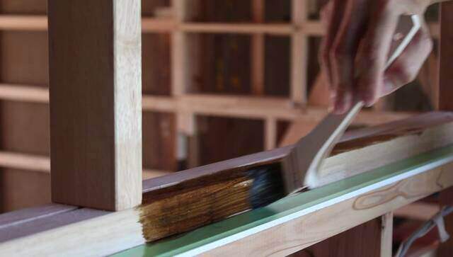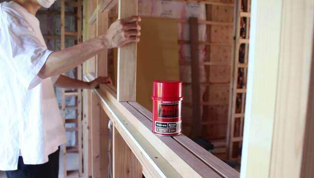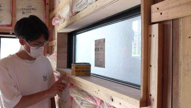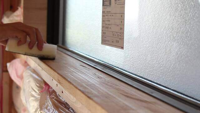窓枠やニッチ等に取り付けた下枠をワックスで色付けします。