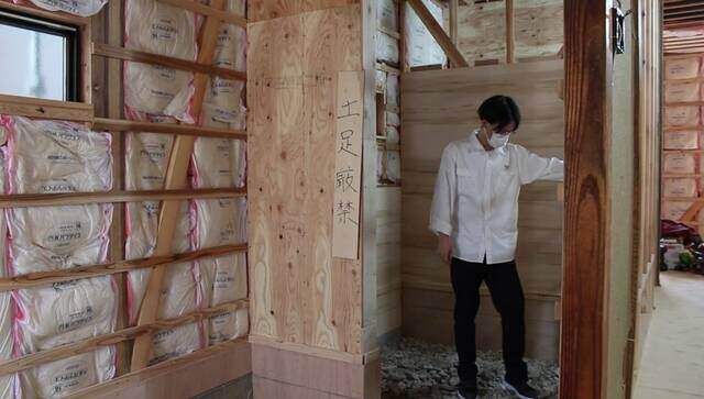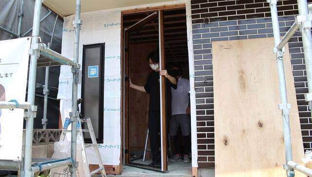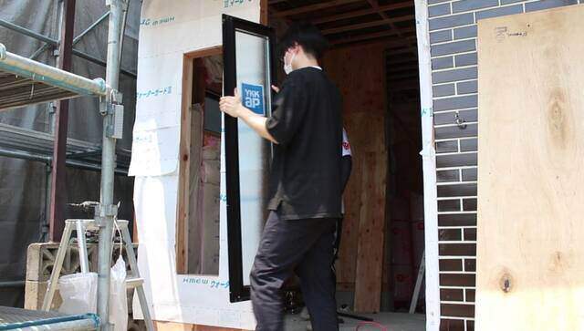 玄関の取り付けは初めてなので、大工さんの設置する様子を見ながら覚えます。
