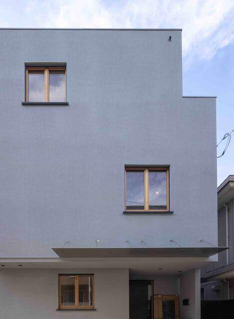 東京組オリジナル建材の「庇」は、より薄くシャープなファサードにするために、ガラス板、アルミ板を用い庇を開発しました。