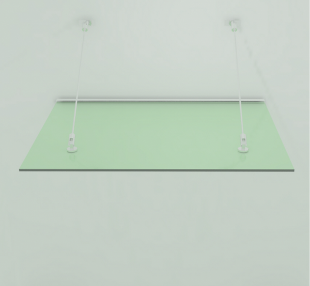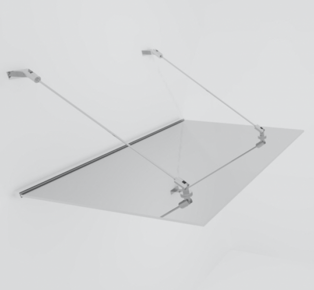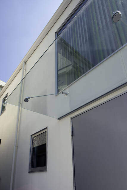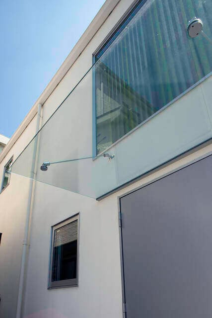 こちらがガラス素材の庇です。透明なガラス素材を採用することで、明るさはそのまま生かし、雨風、埃を防ぐことができます。