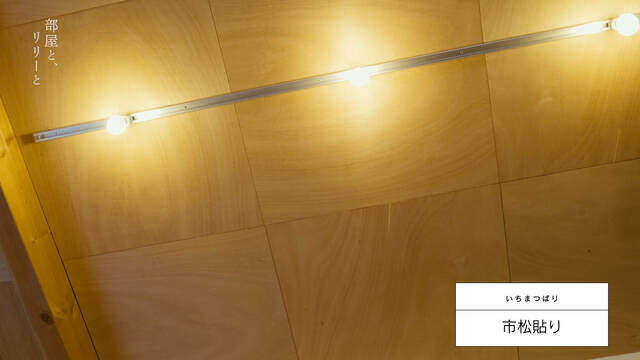 まずは天井、ベニヤで板目や柾目を活かした市松張りにしています。色や素材が粋に映え映えとした様子です。