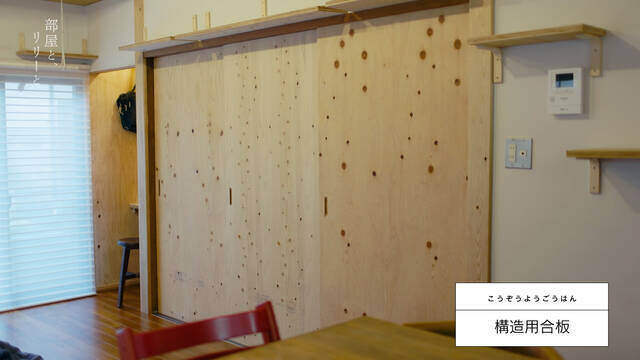 建築で用いられる合板のこと。ここで使われている構造用合板は、長く建物の中で使用されて、その建物の支えやベースとなる部分(構造)に関わる箇所に使用されることを目的にした合板のこと。