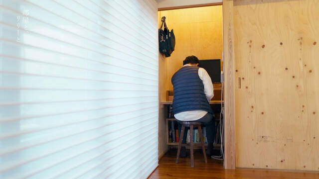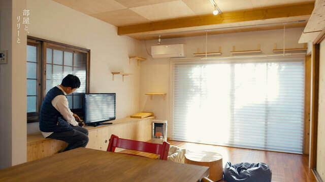 そんな彼のお気に入りの空間は縁側だったスペースに作った書斎。集中できそうな空間で、家族や猫の気配もしっかりわかるし、居心地が良さそうです。