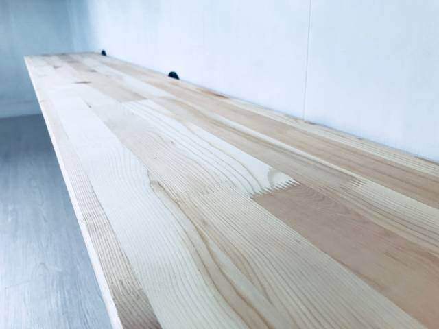 近所のホームセンターで、値段と材質を見ながら、長さ200㎝・奥行き30㎝・厚さ1.5㎝の赤松集成材を購入しました。
