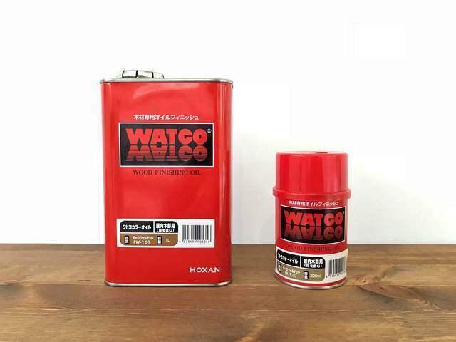 塗料は他の家具と統一するためにワトコオイルのダークウォルナットを準備しています。