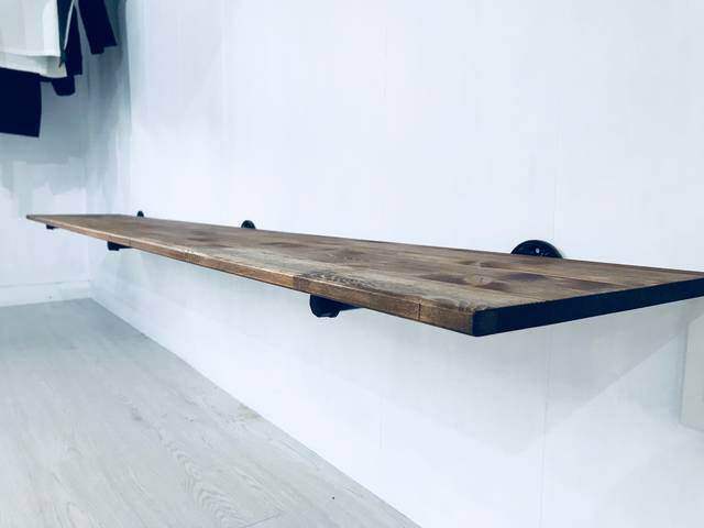 ※デザインによっては支える素材が見えてしまったり、壁からの距離が長くなる分、重量に耐えられなくなったりします。今回は重量物は乗せないため、長めの30㎝を用意していますが、重たい物を乗せる場合は耐久性の強いL字型の棚受けを探すのがオススメです。