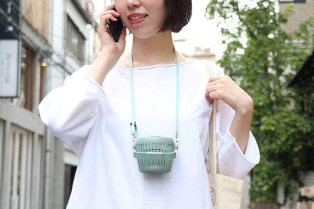 付属のネックストラップをつければ、首からかけて使用することも可能!完全ハンズフリーになるので、両手が埋まってしまうこともありません。不使用時はカバンにすっぽり収まるハンディサイズで、暑い日の外出をサポートしてくれます!