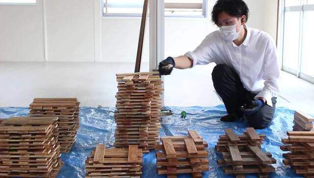 色合いや厚みがまばらになるよう、1枚1枚選びながら貼っているので結構時間がかかります。