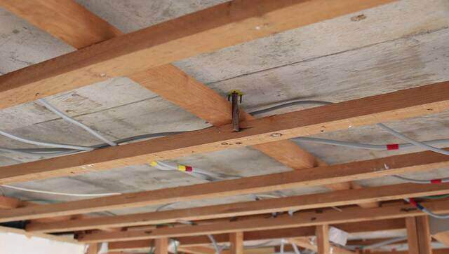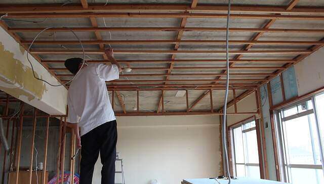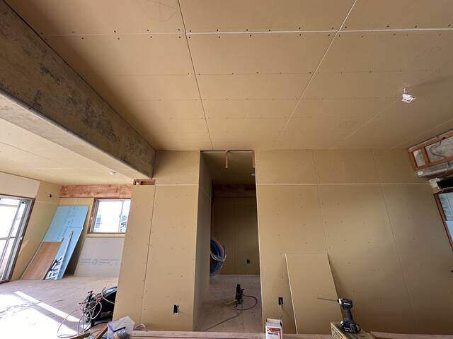 この後は天井に電気配線をしてもらい防音材を入れます。