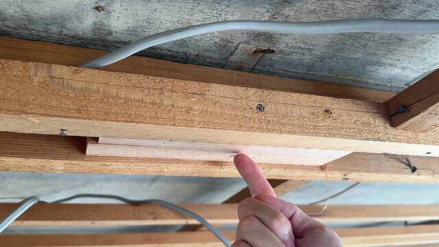 野縁受けに当たる部分をコの字に削り、他の野縁と高さを合わせて固定します。
