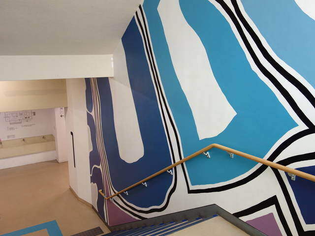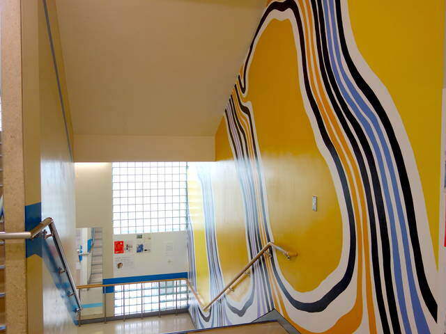 1階から踊り場までの階段壁面には、青を基調とした「作品 #53」、そこから2階へと続く壁面には「無題」を描いていきます。