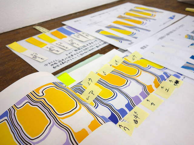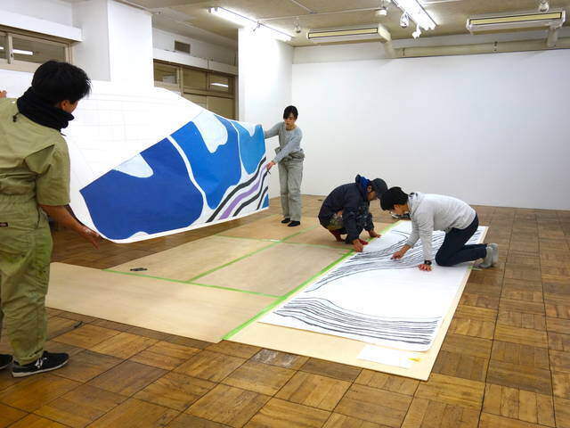 壁画として拡大した時をイメージしながら作品を合わせ、構成していきます。