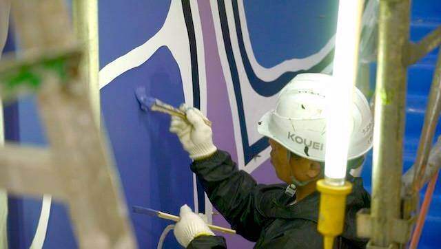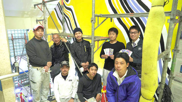 職人の皆さんに今日の作業について聞いてみると、「普段は外壁塗装中心で、今日みたいにカラフルな色を扱うことは滅多にないから、楽しかったよ」「現場に来る前は『作品の再現』って本当にできるかちょっと不安だったけど、やってみるとなんだか誇らしいね」「アーティストの気持ちがわかってきたかも」という声が。