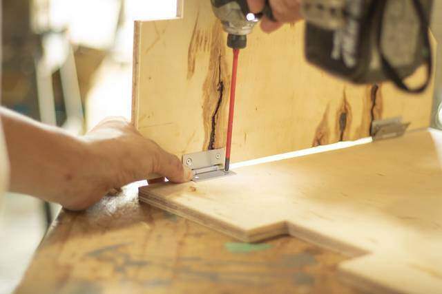 STEP.04 ヒンジをビス止めして側面板を組み立てる
