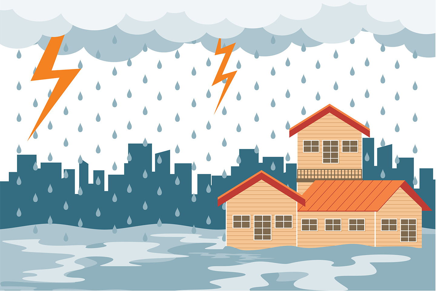 「火災」保険という名前ですが、その補償範囲は非常に広いのが特徴です。火災はもちろん、落雷、風災(台風など)、雪災、雹(ひょう)災、水災(洪水、ゲリラ豪雨による都市型水害など)といった自然災害もカバーします。さらに、「建物外部からの物体の飛来・落下・衝突」も対象です。例えば、「台風で看板が飛んできて外壁が壊れた」、「自動車が自宅に突っ込んできた」といった被害も補償されます。