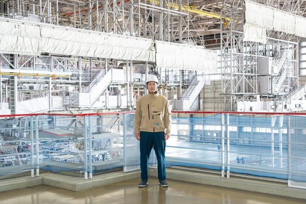 CMにも登場いただいた現場代理人・中川さんに、カシワバラ・コーポレーションの日本航空の格納庫での施工内容について伺いました。