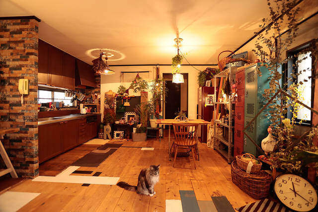 山道具を巧みに収納!壁面を有効活用した2人と1匹暮らし