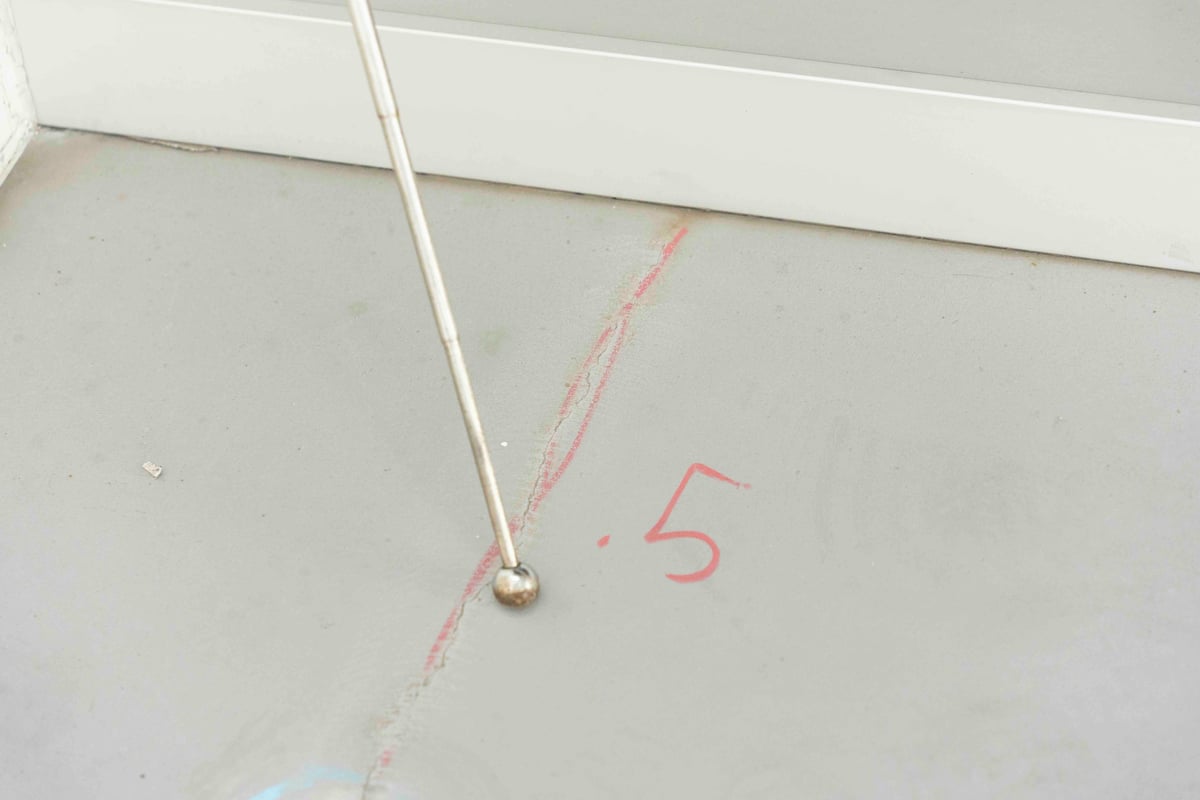 竹下さん:「現況の壁面がフラットで平滑であることから、管理組合様も現況近似での平滑仕上りを望んでいたので、壁面の下地補修箇所について補修完了後にペーパーサンダーでのケレン掛けを行って現況通りの平滑仕上げを行ったことです。」