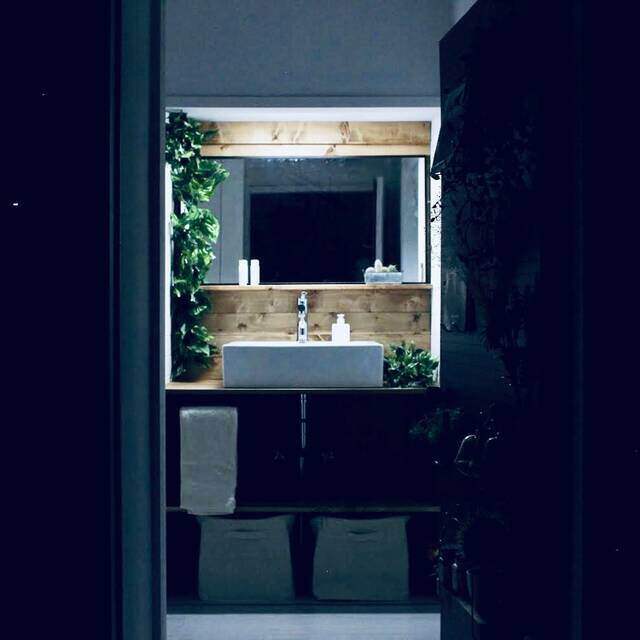 朝が楽しみになる!グリーンの映える自然派な洗面台をDIY -